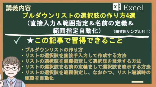 現場の実務編 【現場の実務編10】プルダウンリストの選択肢の作り方4選(直接入力&範囲指定&名前の定義&範囲指定自動化)※自動化して変化に強いリストにできます。 2022年10月20日 ひろふみ ひろふみのエクセル知恵袋 ・プルダウンリストの作り方 ・リストの選択肢を直接手入力して作成する方法 ・リストの選択肢を範囲指定して選択肢を表示する方法 …