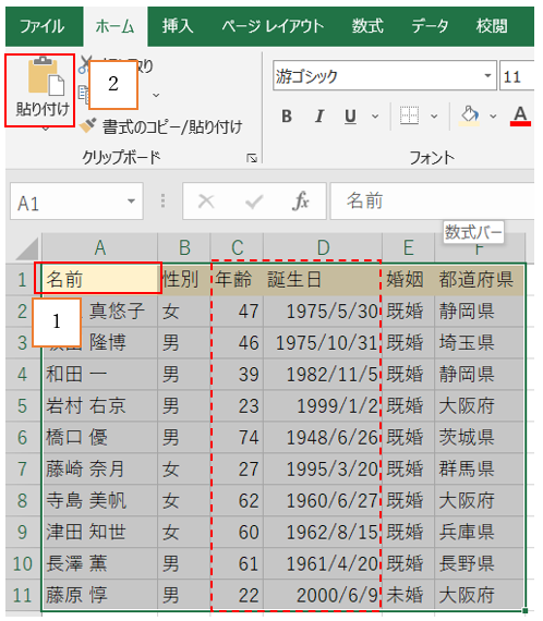 ‘【1】一般的な方法でコピーして貼り付けた場合