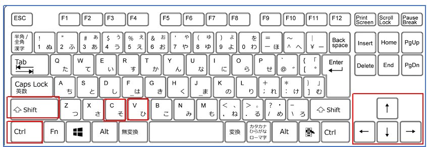 ・基本のコピー&ペーストは「Ctrlキー+Cキー」でコピー、「Ctrlキー+Vキー」で貼り付け。