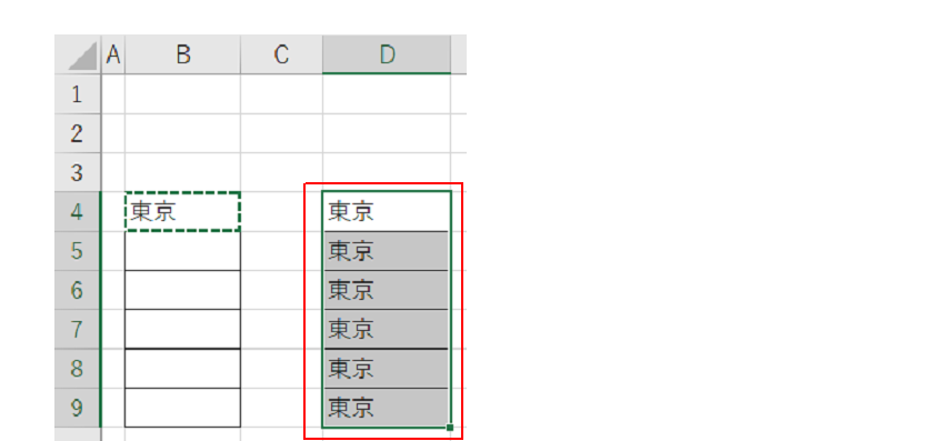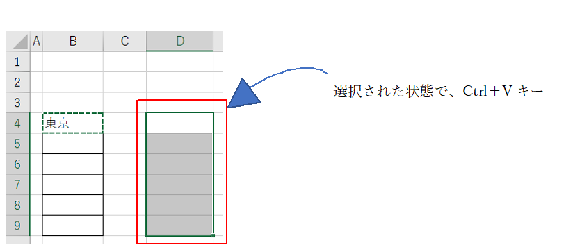 ⑤選択範囲に“東京”が貼り付けられていることを確認