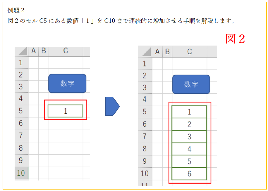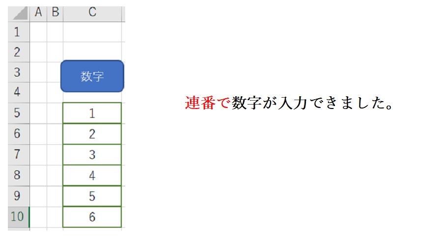 (1)オートフィルで数値の連続データを入力する方法(数値のみの場合)
