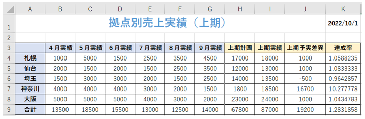練習サンプルデータは、ダウンロードファイルのシート「練習用」となります。