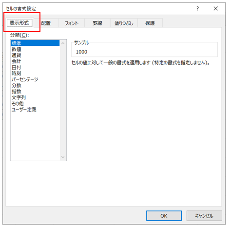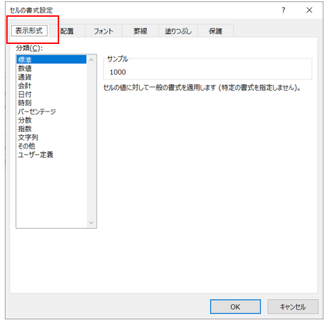 数値の表示形式を設定することができる