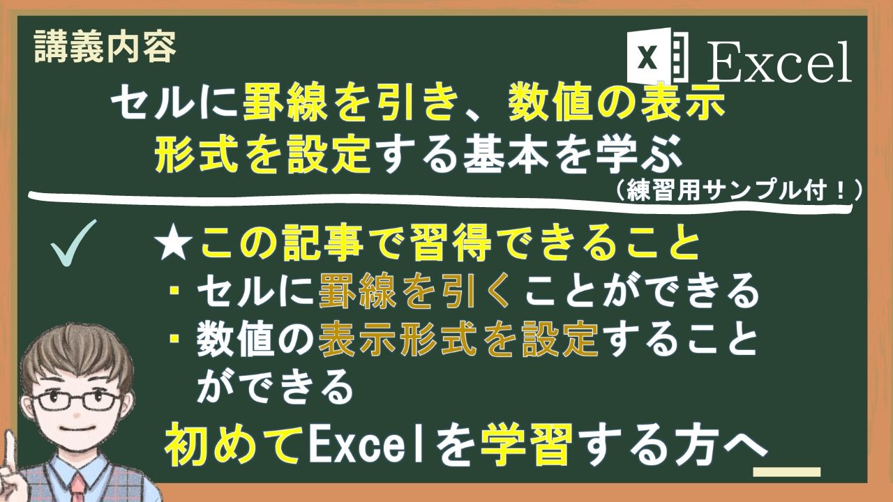 この記事では、セルに罫線を設定し、数値の表示設定する仕方を主に解説しました。