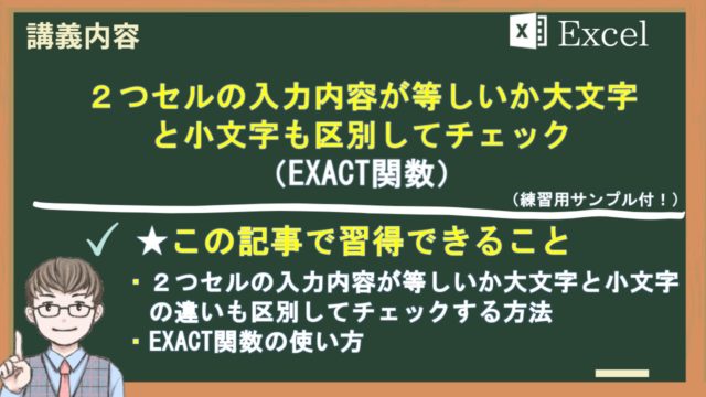 現場の実務編 【現場の実務編50】2つセルの入力内容が等しいか大文字と小文字も区別してチェック(EXACT関数) 2022年12月1日 ひろふみ ひろふみのエクセル知恵袋 ・2つセルの入力内容が等しいか大文字と小文字も区別してチェックする方法 ・EXACT関数の使い方 練習用サンプルデータ( …