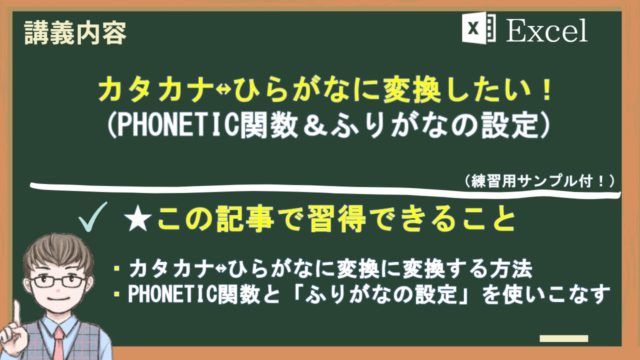 現場の実務編 【現場の実務編49】カタカナ↔ひらがなに変換したい!(PHONETIC関数&ふりがなの設定) 2022年11月30日 ひろふみ ひろふみのエクセル知恵袋 ・カタカナ↔ひらがなに変換に変換する方法 ・PHONETIC関数と「ふりがなの設定」を使いこなす 練習用サンプルデータ( …
