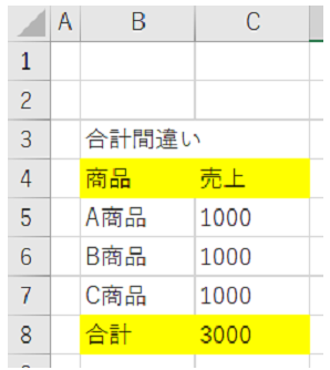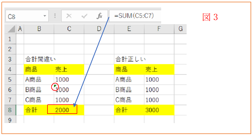 図3の例を見てほしい、商品の売上合計は、3000にならないといけない。