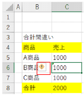 ②C6を選択すると「!」のマークが表示されると思う。「!」をクリックしてみてほしい。