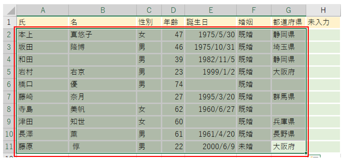・大量データに未入力セルがないかを素早く✔する方法
