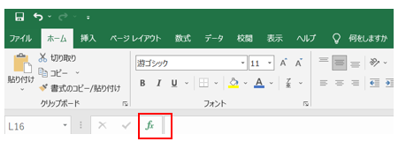 ⑦上部メニューのfxをクリックし、関数の入力画面を起動します。
