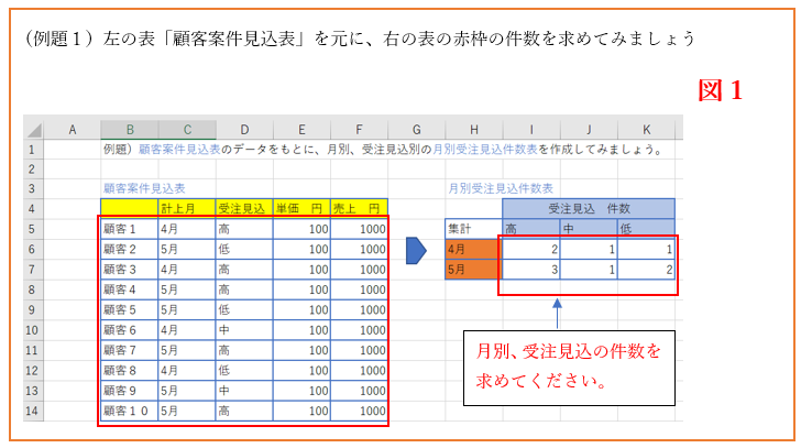次は、例題を解いて理解を深めていきましょう。図1の月別受注見込件数を求めます。