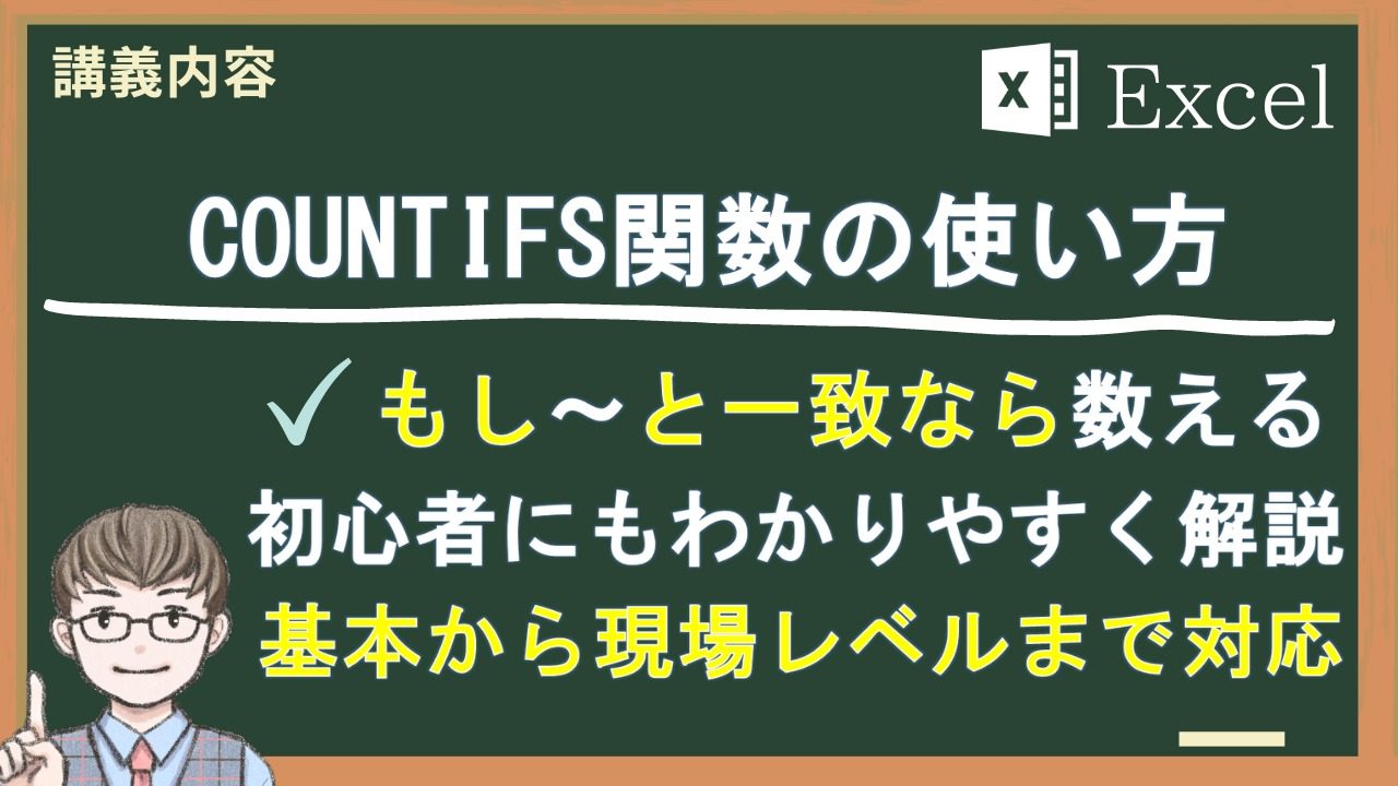 件数を数える際に、数値のみ数える関数COUNT関数もありますが、より実用的に使う関数がCOUNTIFS関数です。COUNTIFS関数の良さは、条件が複数あっても数えられる点です。利便性があり、事務職、営業職、企画職でも幅広く活用しますので、理解しましょう。