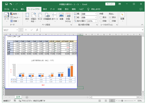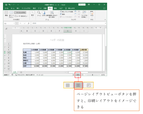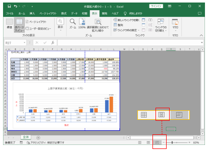 改ページプレビューの画面では、印刷時の改ページ位置を調整することができます。