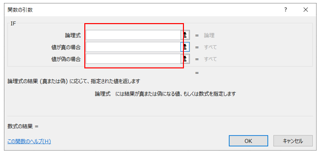 以下の入力画面を参照ください。「値が真の場合」の入力する場所はあるが、条件を満たさなかった場合の条件を入力箇所はありません。