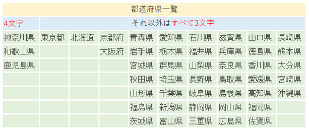都道府県名を調べてみると、4文字あるのは、神奈川県、和歌山県、鹿児島県の3つだけで、それ以外は3文字の都道府県となっています(都道府県一覧を参照)。その規則性を利用すれば、意外に簡単に抽出できます。