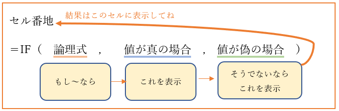 IF関数は、「もし ●●が××だったら、これを表示し、そうでないなら、これを表示する」という関数です。