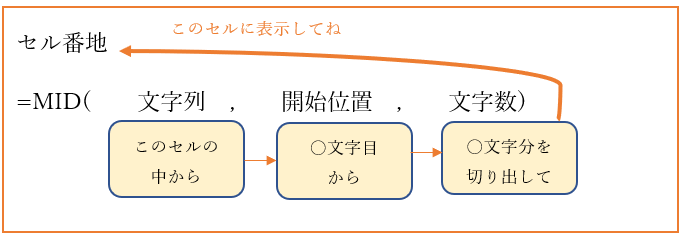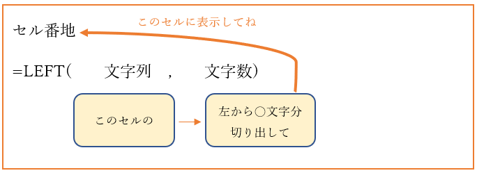 指定したセルの左から〇番目の〇文字分を切り出して表示したい時に使う関数です。