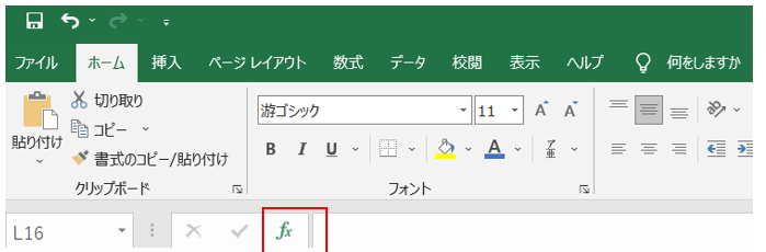 ②上部の数式バーの中に、数式が表示されています。fxの「=」の後ろにある数式をコピーする。(「=」はコピーしないこと)。その後、ESCキーを押す(一旦、コピー動作を解除しておく)