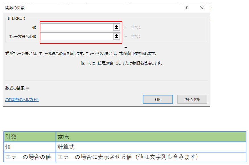 ここから、IFERROR関数の入力画面の理解を深めてみよう