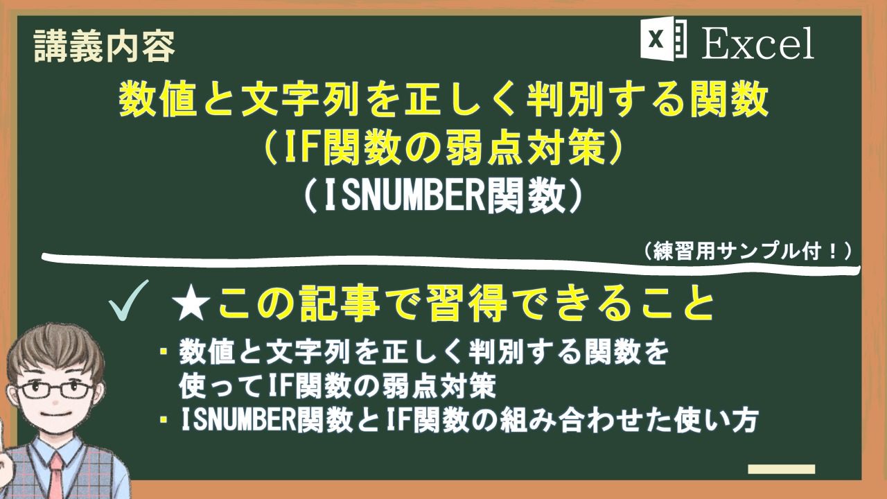 ISNUMBERは、IF関数の弱点とする「数値」「文字列」の判別を補う関数としては、