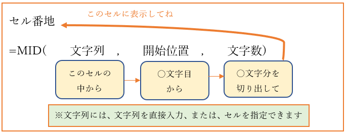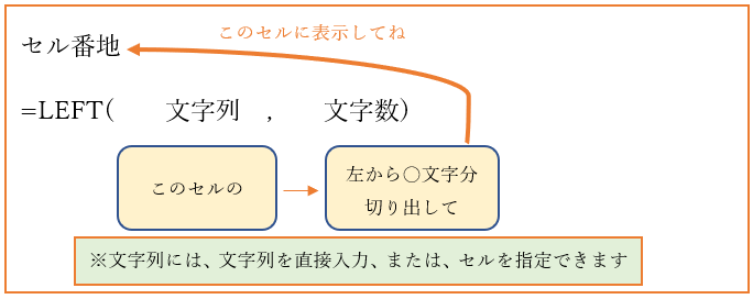 指定したセルの左から〇番目の〇文字分を切り出して表示したい時に使う関数です。