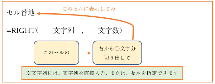 指定したセルの右から数えて〇文字切り出して表示したい時に使う関数です。