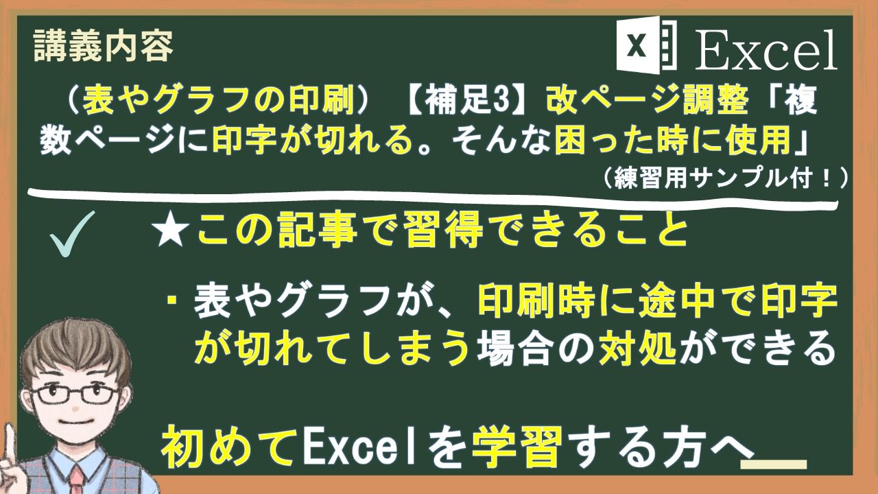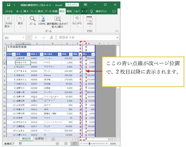 改ページ機能を使って、表やグラフが印刷時に途中で切れてしまう場合の対処ができる