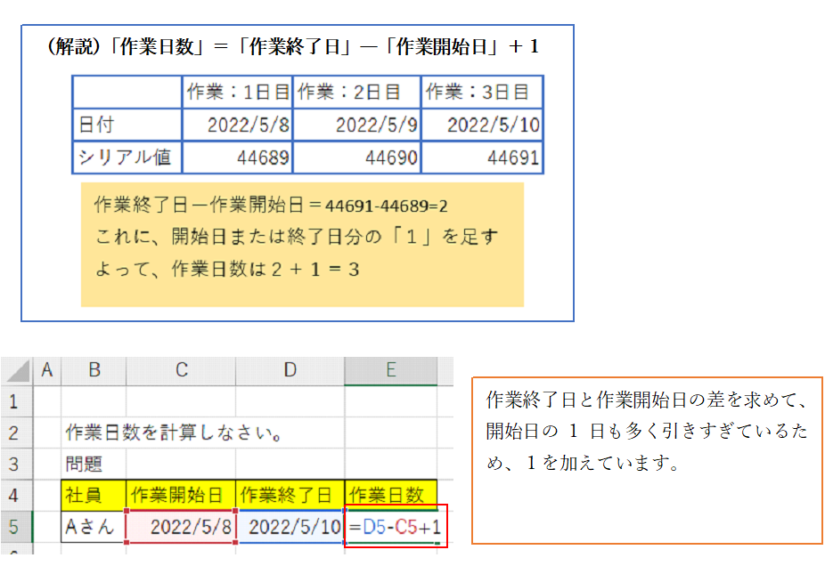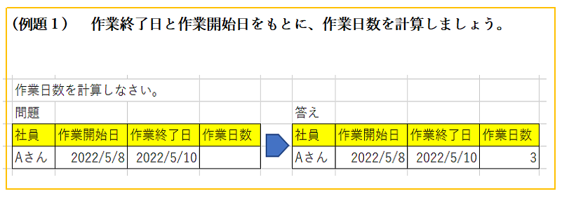 (1) 作業終了日と作業開始日から作業日数を計算する方法
