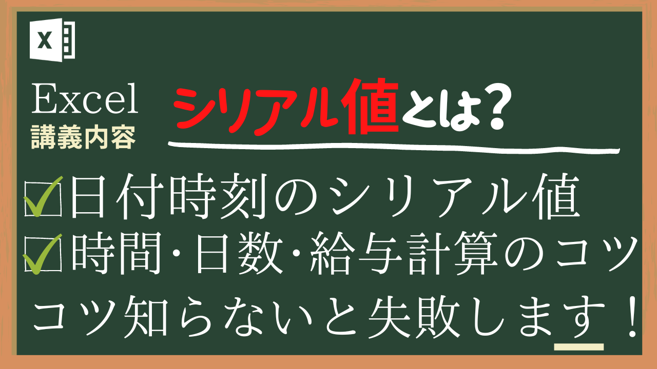 間違った答えが表示されてしまいます。ここでは、シリアル値を正しく理解することと、計算する際のコツを紹介していきます。