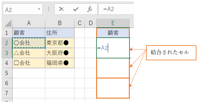 ‘【2】通常の単一セルの値を、別の結合ありセルに表示させる方法
