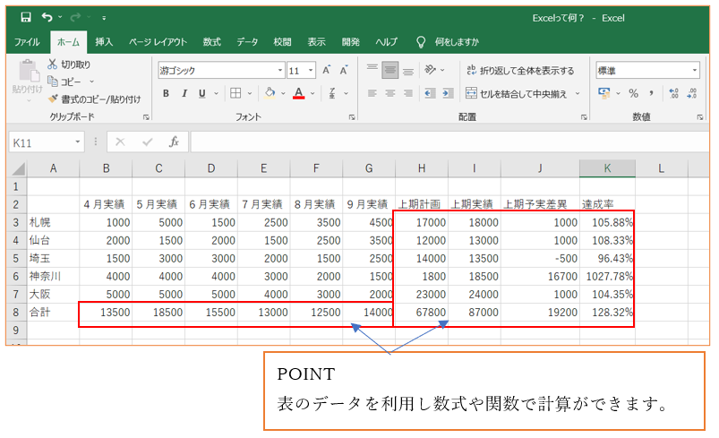 Excelでは、セルという方眼紙のようなマス目にデータを入力し、数式や関数を使えば、以下のような表を簡単に作成できます。