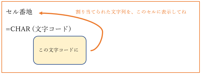 CHAR関数は、JISやANSIの文字コードを、文字列に変換できる関数です。