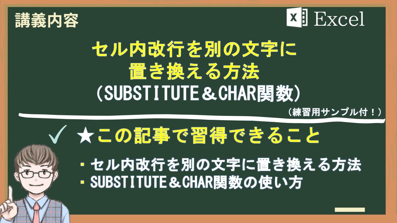 【現場の実務編52】セル内改行を別の文字に置き換える方法(SUBSTITUTE&CHAR関数)