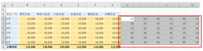 ‘⑪H3からM8までをマウスでドラッグして、コピーしてください。
