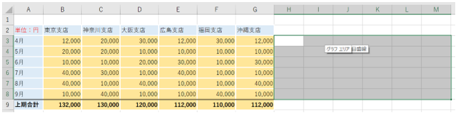 まず、表からグラフを作成する際は、作成した(されている)Excelの表を確認してください。金額などを表示している数値の桁数が多い場合、会議資料としては見づらい為、千円単位や万単位、時には百万単位に数値を修正した方が見栄えが良いです。表だけならセルの表示形式でも調整できますが、グラフと表をセットで報告資料として作成する場合、全体のレイアウトの調整がやり辛いところがあります。その為、表のデータその物を千円単位や万単位、百万単位に微調整するやり方がお勧めで効率的だと思います。