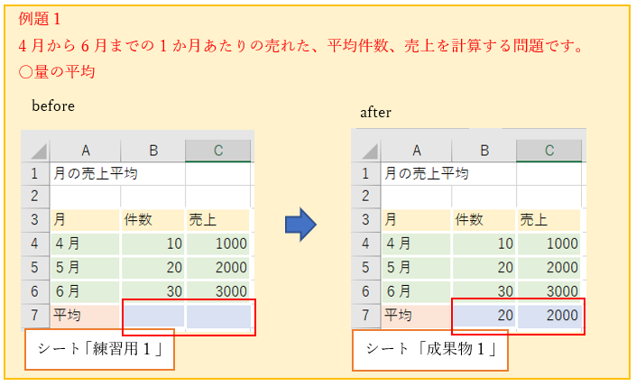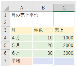 売れた量(件数や金額)の平均を求める時は、AVERAGE関数を使って計算します。
