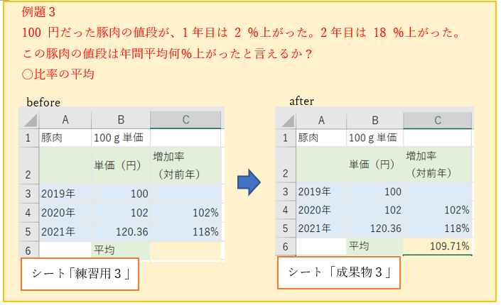 ‘【3】例題3の平均値を計算(GEOMEAN関数)
