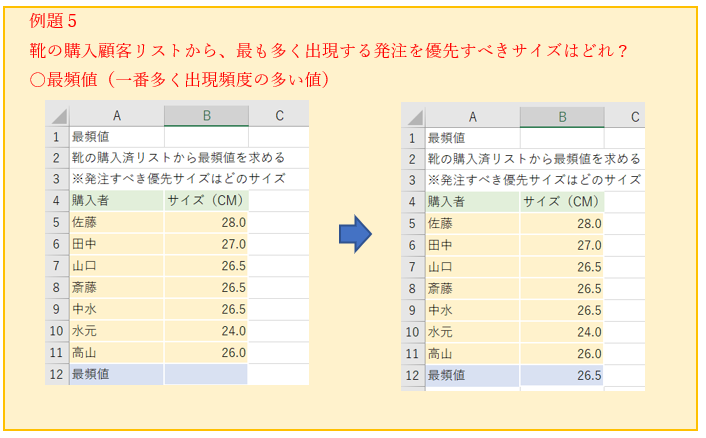 ‘【5】例題5の最頻値を計算(MODE.SNGL関数)