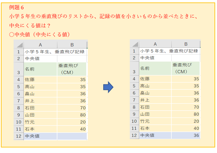 ‘【6】例題6の中央値を計算(MEDIAN関数)