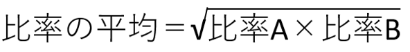数値を、数値1、数字2に指定すると、数値の比率の平均値がセル番地に