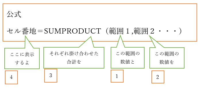 SUMPRODUCT関数は、指定した範囲に含まれる数値の積を合計します。